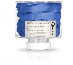 Bei Verbrauch der Granulat-Füllung, verfärbt sich der INDIKATOR  bei Einsatz von säurehaltigen Dämpfen von BLAU auf GELB und beim Einsatz von laugehaltigen Dämpfen ergibt sich ein Farbumschlag von BLAU auf WEISS.