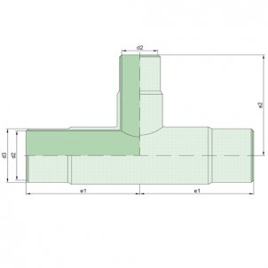 UP-GF T-Stück 90° reduziert, DIN 16 966, Form T2, Rohrtyp D, mit Laminatenden, PN 16