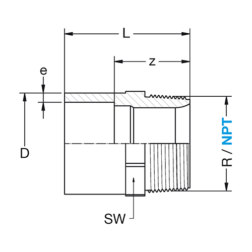 D x NPT [mm x Inch] Thread e [mm] L [mm] z [mm] SW [mm] Gewicht VE Art.-Nr. Artikel bestellen