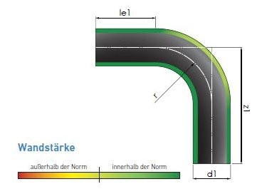 Jegliche Maße, Anschweißlängen sowie Toleranzen und Werkstoffeigenschaften werden hierdurch vorgeschrieben. Auch die Wandstärke nahtloser Bögen zählt dazu. Die Endung „- 3“ gibt an, dass nicht nur das Rohr, sondern auch das fertige Formteil den Normen entspricht.