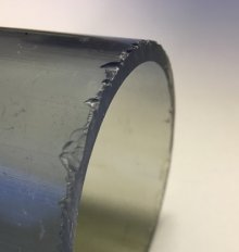 Von entscheidender Bedeutung sind hier der Freiwinkel, der Spanwinkel, die Zahnteilung und die Schnittgeschwindigkeit. Aus der o.a. Tabelle und den beigefügten Bildern ist ersichtlich, dass für harte und spröde Werkstoffe z.B. PVC eher hohe Schnittgeschwindigkeiten und kleine Zahnteilungen anzustreben sind. Bei den Werkstoffen PE und PP neigt der Werkstoff zu Erhitzung, aus diesem Grunde wählt man kleine Schnittgeschwindigkeiten.