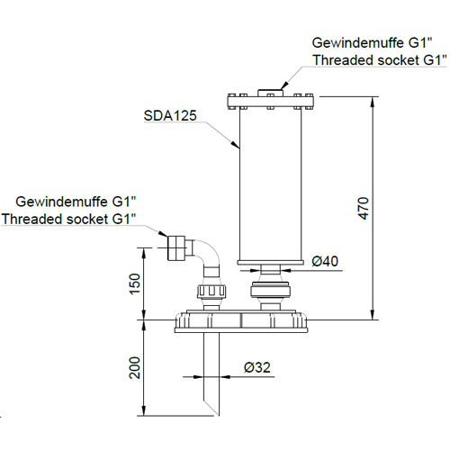IBC-Schraubkappe DN 225 aus PE-el, mit Säuredunstabscheider SDA125 und Befüllanschluss G1", elektrisch-leitfähig