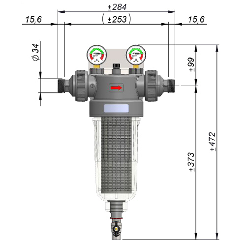 Cintropur Wasserfilter Semi Line Filtergehäuse NW 280, 1 Zoll Außengewinde