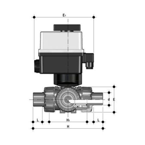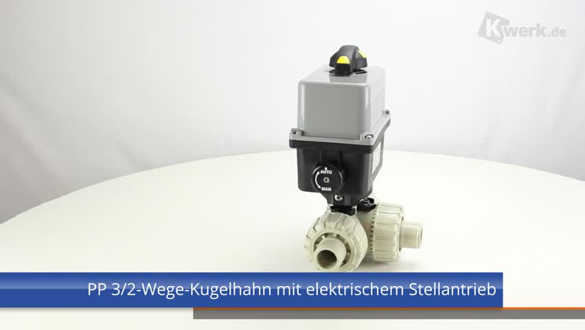 3-Wege-Kugelhahn aus PP mit elektrischem Stellantrieb