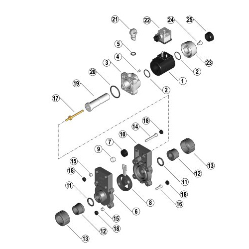| 2/2-Wege-Magnetventil mit Handnotbetätigung - Gehäusewerkstoff: PVC-U - Funktion: normal geschlossen (NC) - Dichtwerkstoff: EPDM - Schutzart: IP 65 - Wechselspannungen (AC): 230V (Standard), 24V, 110V*, Frequenz 50-60 Hz - Gleichspannungen (DC): 24V, 12V auf Anfrage - Anschluss: Klebemuffen |