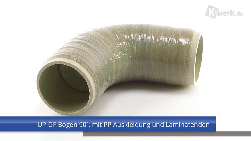 UP-GF-PP Bogen 90° DIN 16 966, Form E1, Rohrtyp B, Liner PP, mit Laminatende, PN 16