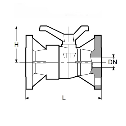 2-Wege-Flanschkugelhahn PPGF, FEP/FFPM = blauer Hebel
