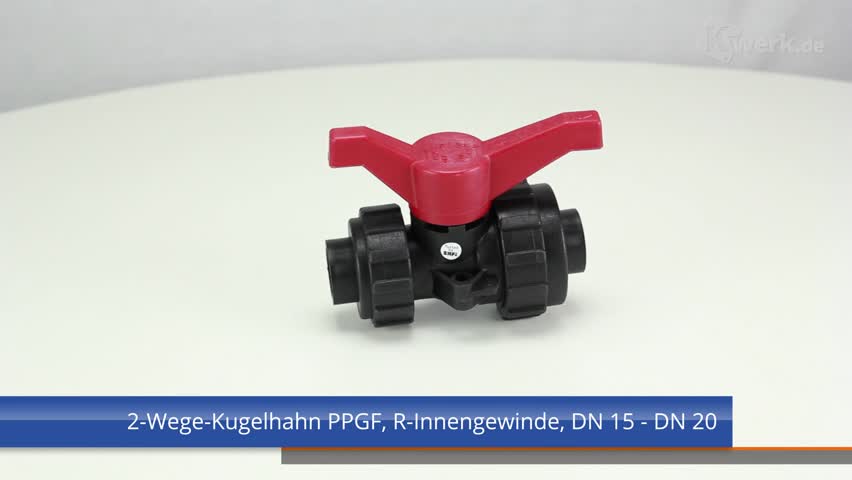 2-Wege-Kugelhahn PPGF, Innengewinde, FEP/FFPM = blauer Hebel