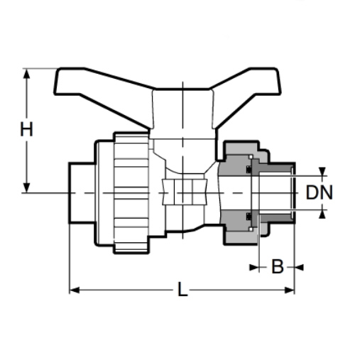 2-Wege-Kugelhahn PPGF, PP-Muffen, EPDM = roter Hebel