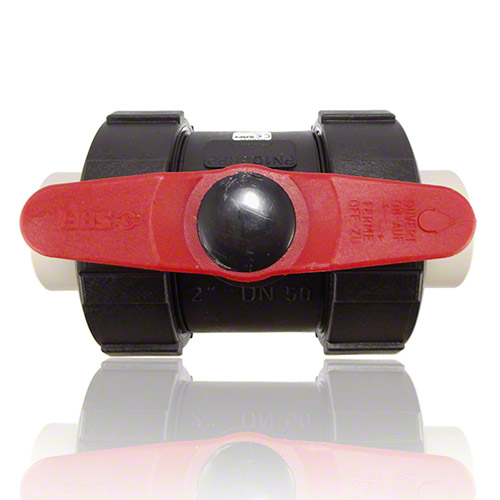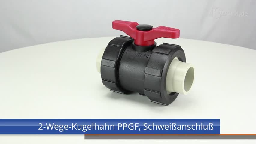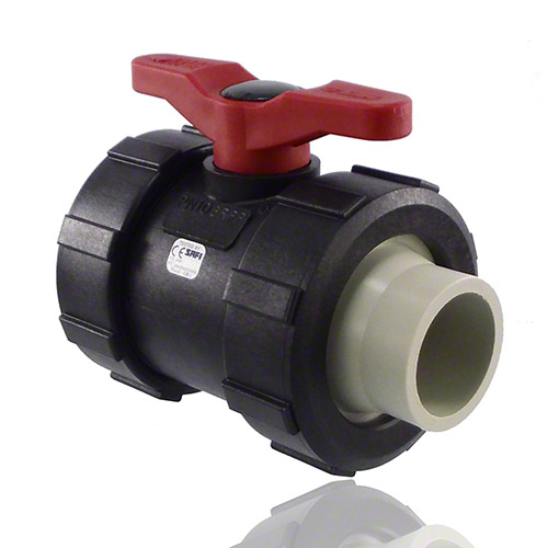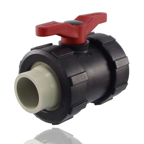 2-Wege-Kugelhahn PPGF, PP-Muffen, EPDM = roter Hebel