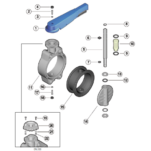 PVC-U Absperrklappe FE, Handgetriebe, EPDM