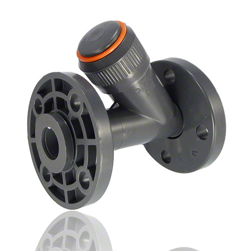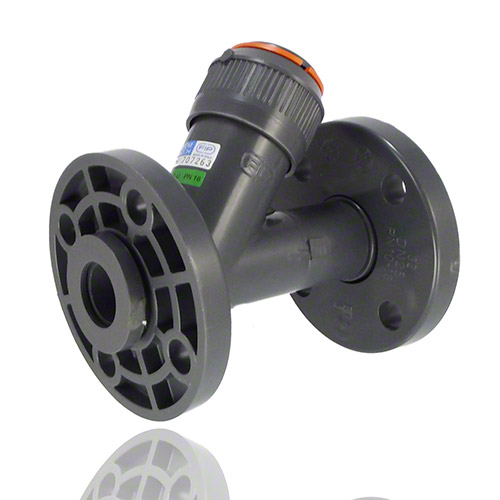 | -Dichtung: EPDM -Anschluss: Losflansch aus PVC-U -eingebautes Filternetz mit Maschenabstand 1,5 mm, Verunreinigung ab 0,5 mm trennbar -Einbau: waagrecht und senkrecht in Leitung -Durchflussrichtung: Siebteil nach unten gerichtet -andere Maschenabstände auf Anfrage |