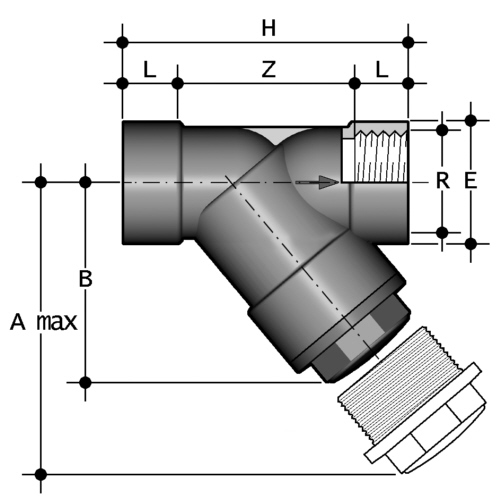Schmutzfänger PP-EL DN 15 - DN 50