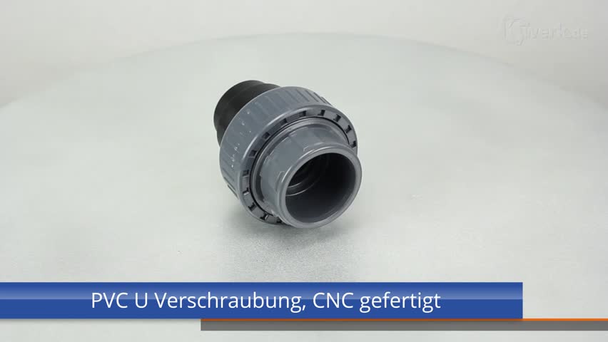 - Einschraubteil PVC U handelsüblich - Einlegeteil PE - CNC gedreht - - Überwurfmutter PVC U handelsüblich - O-Ringe aus EPDM, FPM auf Anfrage lieferbar Andere Abmessungen auf Anfrage möglich. |